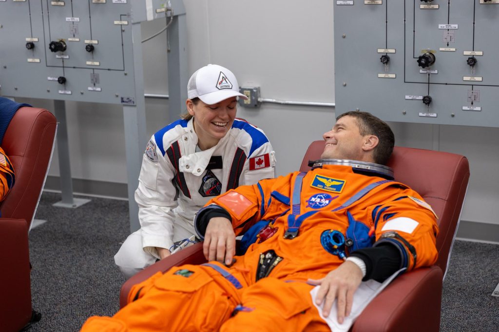 ลูกเรือจากแคนาดา Jeremy Hansen กำลังตรวจสอบความเรียบร้อยในการสวมชุด ที่มา – NASA/Glenn Benson