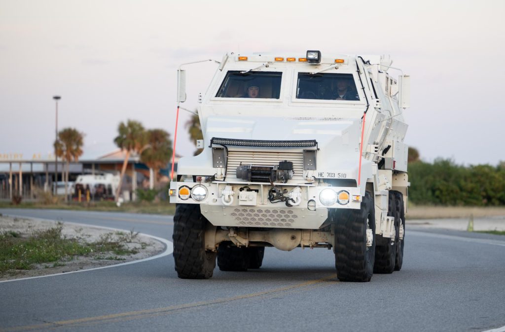 เมื่อกระเช้าโรยตัวลงถึงพื้น ลูกเรือจะถูกนำขึ้นรถหุ้มเกราะพิเศษที่จอดรออยู่ภายใน Blast Zone รถเหล่านี้ถูกออกแบบมาให้ทนต่อแรงกระแทก ความร้อน และเศษซากจากการระเบิดในระดับหนึ่ง ทำหน้าที่เป็นพาหนะพาลูกเรือออกจากบริเวณฐานปล่อยไปยังศูนย์แพทย์หรือจุดปลอดภัยของ NASA Kennedy Space Center ให้เร็วที่สุด เส้นทางและเวลาการเคลื่อนที่ของรถถูกคำนวณไว้ล่วงหน้า