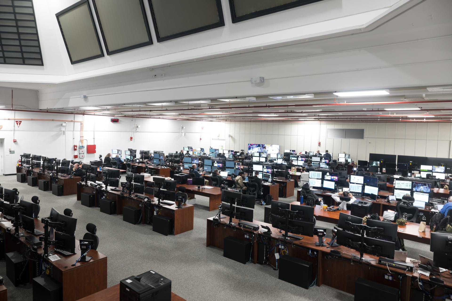 อีกมุมนึงของห้อง Firing Room ที่จะเป็นฝั่งของงานด้านระบบ Ground System ต่าง ๆ ที่มา – NASA/Aubrey Gemignani