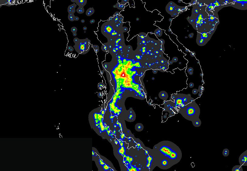 สำหรับตำแหน่งที่เหมาะกับการดูดาวให้ดูจาก แผนที่มลพิษแสง ซึ่งจะสังเกตว่า ภาคกลางรวมถึงกรุงเทพมหานครนั้น แทบจะไม่เหมาะกับการดูดาวเลย แต่ในบริเวณภาคใต้ เหนือ และอีสาน ยังสามารถเห็นดาวได้อย่างชัดเจน (หลีกเลี่ยงบริเวณ สีขาว สีแดง และสีส้ม) ส่วนบริเวณที่สว่างที่สุดนั้น ดูจากในแผนที่ก็คือ กรุงเทพมหานครและบริเวณตัวเมืองเชียงใหม่