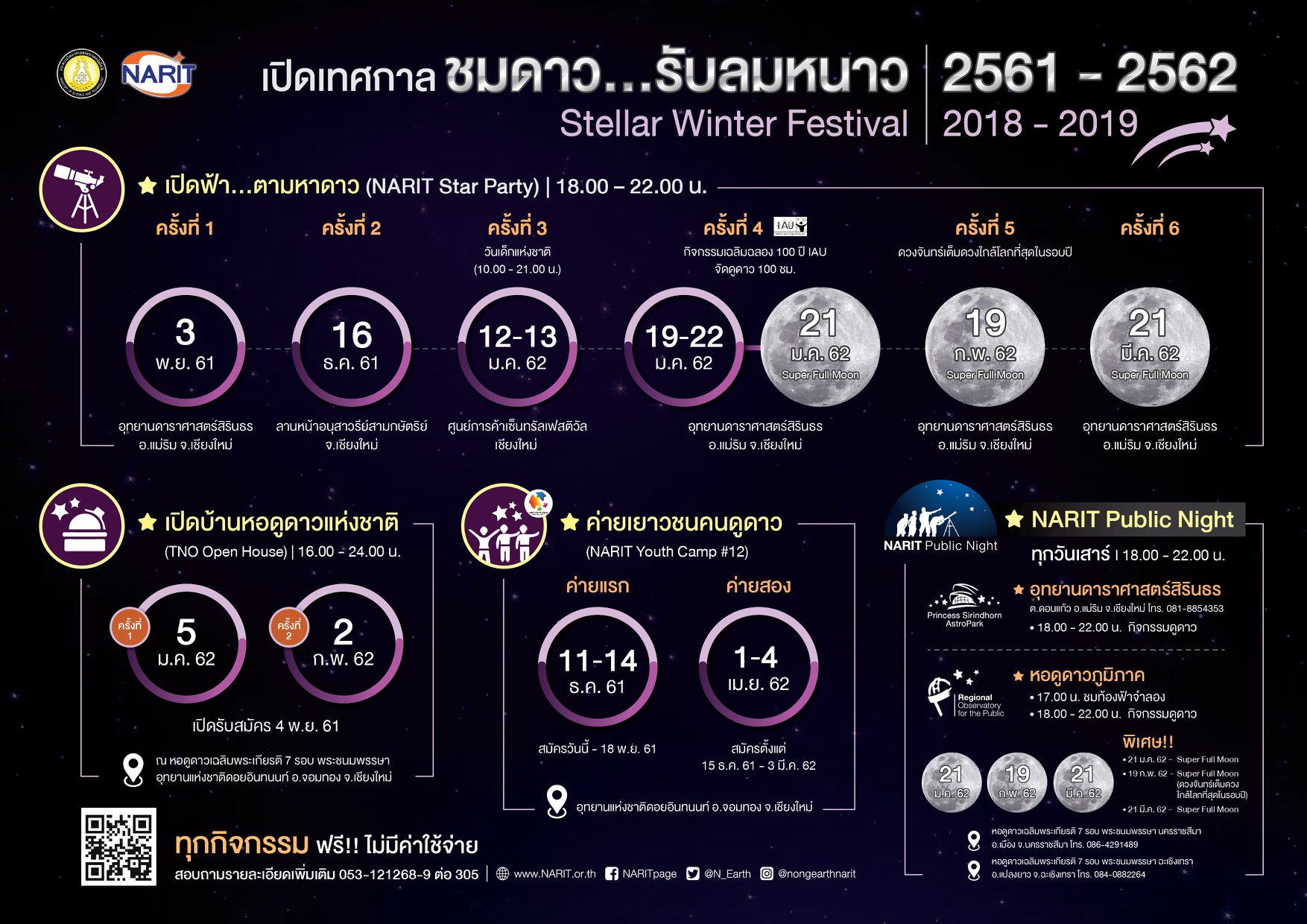 สำหรับกิจกรรมอื่น ๆ สามารถติดตามได้ที่ Facebook สถาบันวิจัยดาราศาสตร์แห่งชาติ Fan Page