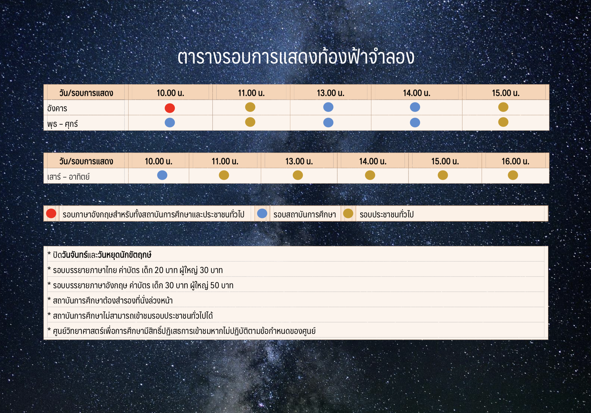 - ดู ตารางรอบการแสดงท้องฟ้าจำลอง
