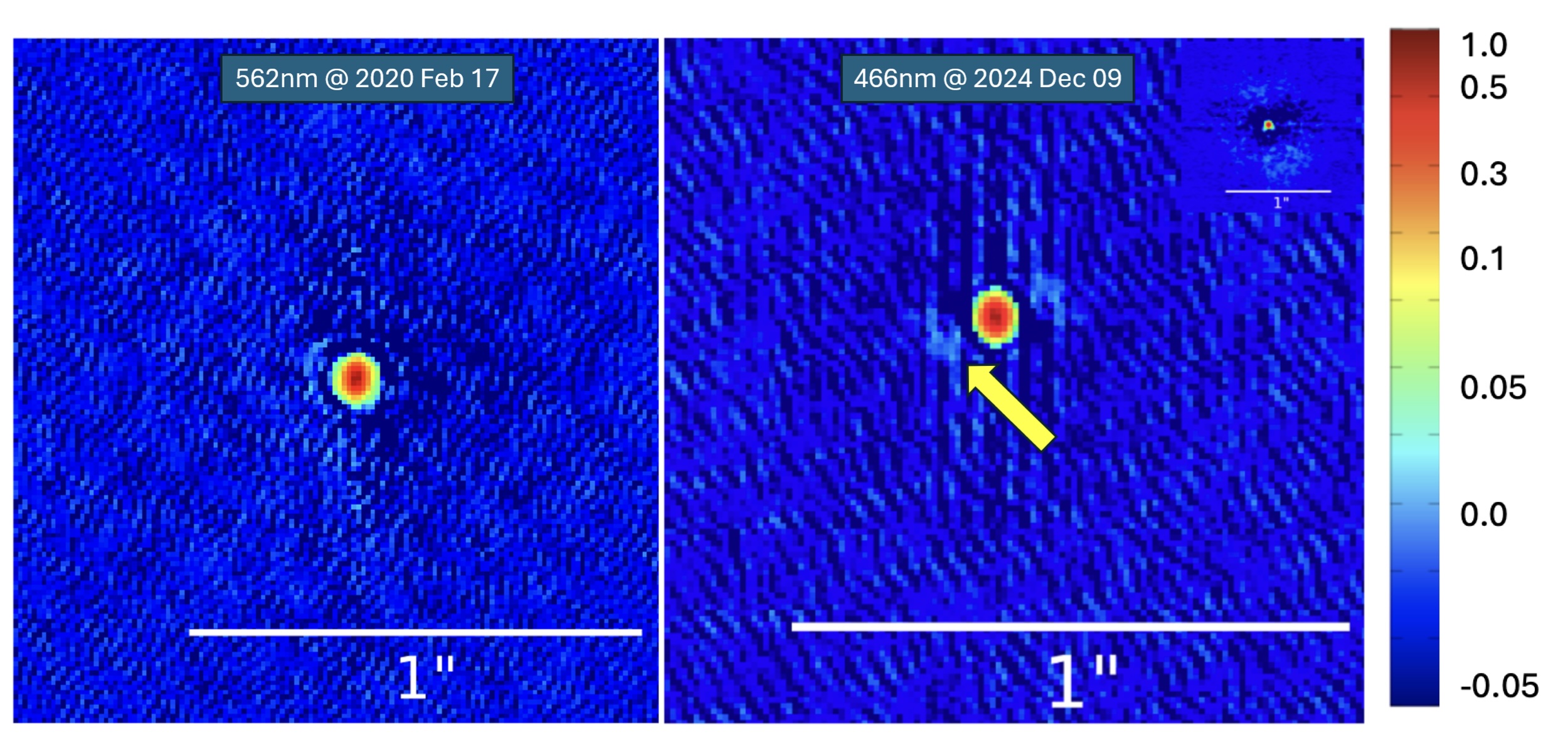 ในการศึกษาช่วงปี 2020 นักวิจัยไม่พบวัตถุใด ๆ ใกล้ Betelgeuse ซึ่งสอดคล้องกับแบบจำลองที่บอกว่า Companion ควรถูกบดบังอยู่ด้านหลังดาวหลัก แต่ในปี 2024 เพียง 3 วันหลังจากช่วง Elongation ทีมงานพบสัญญาณของวัตถุจาง ๆ ที่ตำแหน่งห่างจาก Betelgeuse ไปประมาณ 52 Milliarcseconds ที่มุม 115 องศาตะวันออกของทิศเหนือ โดยมีความสว่างจางกว่าถึง 6 Magnitude ในช่วงความยาวคลื่น 466 นาโนเมตร หรือในแถบสีฟ้าของแสงที่ตามนุษย์มองเห็นได้