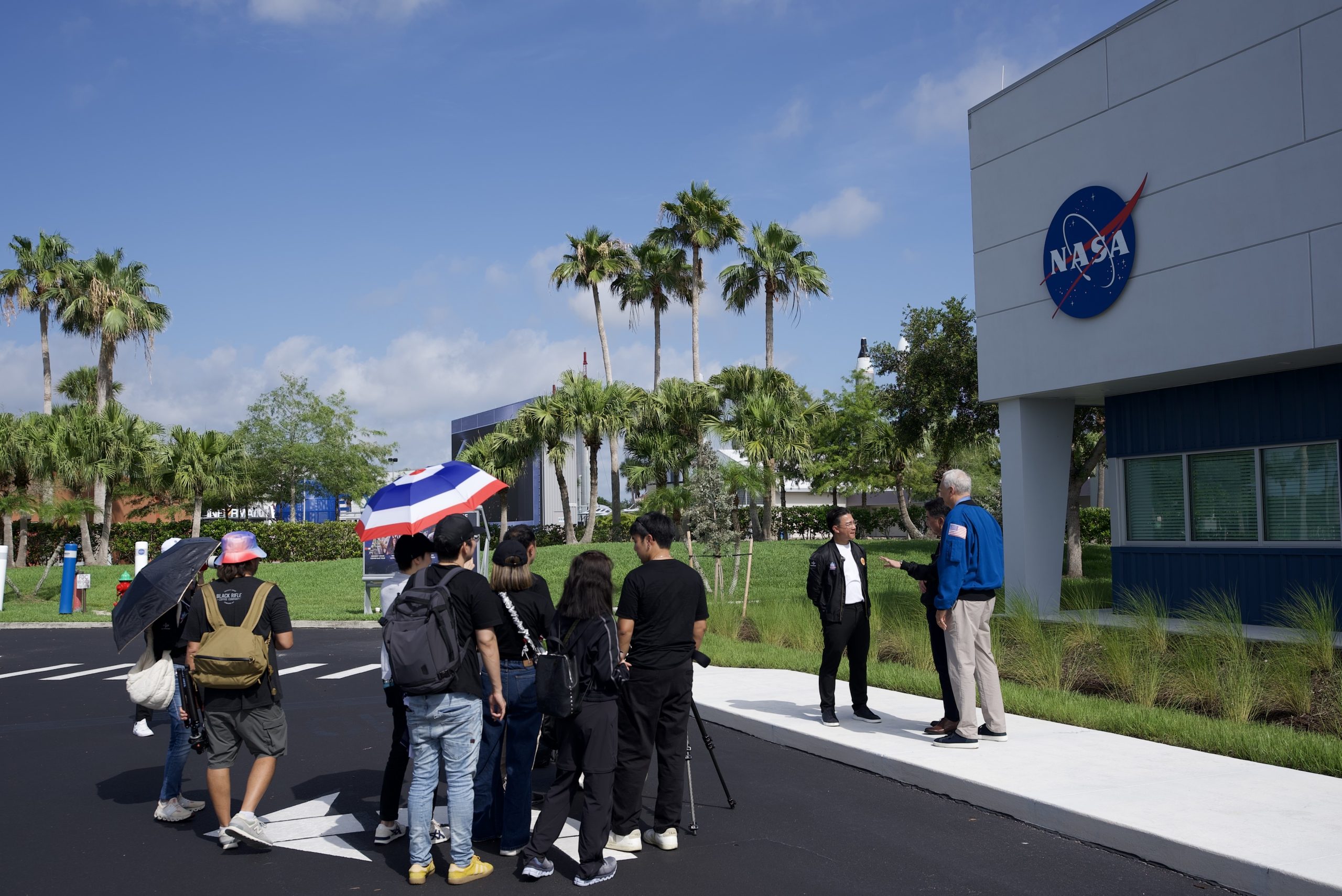 หลังจากพูดคุยกันแล้ว ในช่วงเช้า แต่ละคนก็ต่างแยกย้ายกันเดินชม NASA Kennedy Space Center Visitor Complex ซึ่งถ้าหากใครที่อยากรู้ว่าด้านในมีอะไรบ้างก็สามารถอ่านบทความที่เราเคยพาชมได้ใน พาเที่ยว NASA Kennedy Space Center แต่ที่เรียกได้ว่าพิเศษและเป็นเซอไพรส์ของวันนี้ก็คือทางทีม CPF ได้ประสานงานกับ Visitor Center เพื่อจัด Private Tour ให้กับพวกเราขณะชาวไทย ได้เข้าไปในรั้วหลัง NASA ซึ่งเป็นพื้นที่หวงห้ามพิเศษ ในแบบเป็นส่วนตัวสุด ๆ โดยไม่ต้องนั่งกับใครเลย ทั้งคันมีแค่พวกเราเท่านั้น