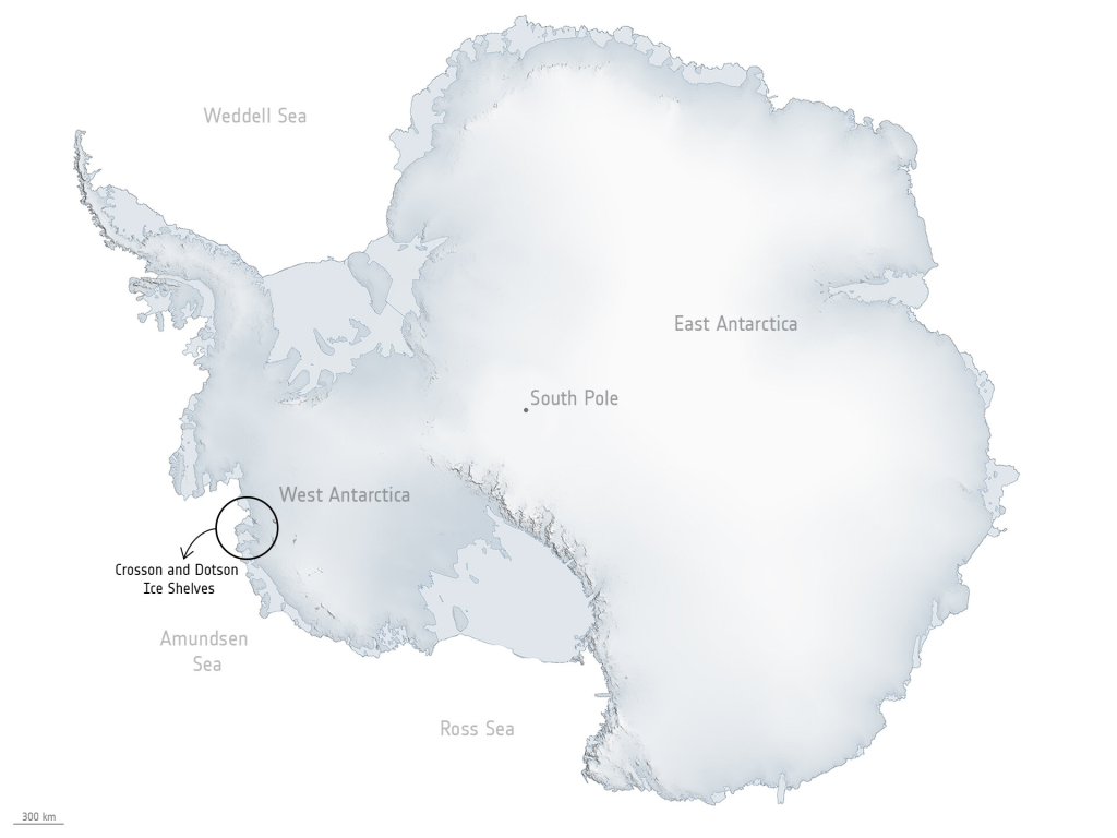 ชั้นน้ำแข็ง Dotson และ Crosson ในทะเล Amundsen ที่มา – ESA
