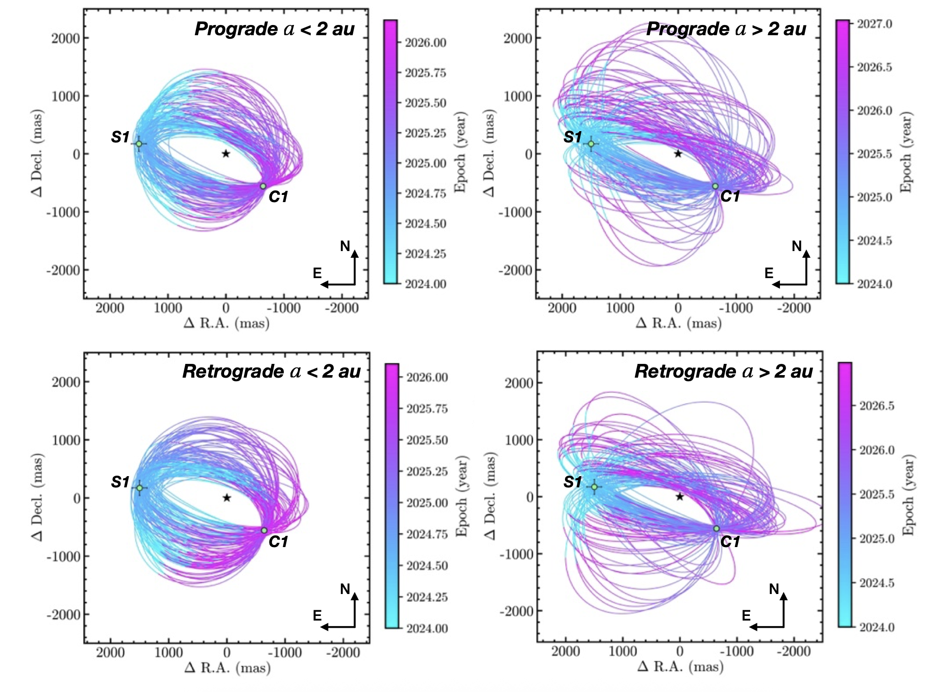 แต่เหมือนบทละครจะต้องมีจุดหักมุม พอถึงรอบสังเกตถัดมาในกุมภาพันธ์และเมษายน 2025 จุด S1 กลับไม่โผล่มาอีกเลย ถ้าเป็นคนทั่วไปอาจบอกว่า “ดาวแม่งหาย” แต่ในเชิงวิทยาศาสตร์มันหมายถึงเราต้องคิดว่ามีอะไรบ้างที่อธิบายได้ การใช้ข้อมูลนี้ร่วมกับการค้นพบก่อนหน้าจากโครงการ VLT/NEAR ในปี 2019 ที่เคยเจอ Candidate ชื่อ C1 ทำให้ทีมลองจำลองวงโคจรนับล้านรูปแบบภายใต้ข้อจำกัดแรงโน้มถ่วงจาก Alpha Cen B ผลออกมาคือ ครึ่งหนึ่งของวงโคจรที่เป็นไปได้จะพาดาวเคราะห์เข้าใกล้ดาวแม่จน Coronagraph มองไม่เห็นในสอง Epoch หลัง ความน่าจะเป็นแบบนี้บอกเราว่าการไม่พบในรอบหลัง ๆ ไม่ใช่เรื่องแปลก