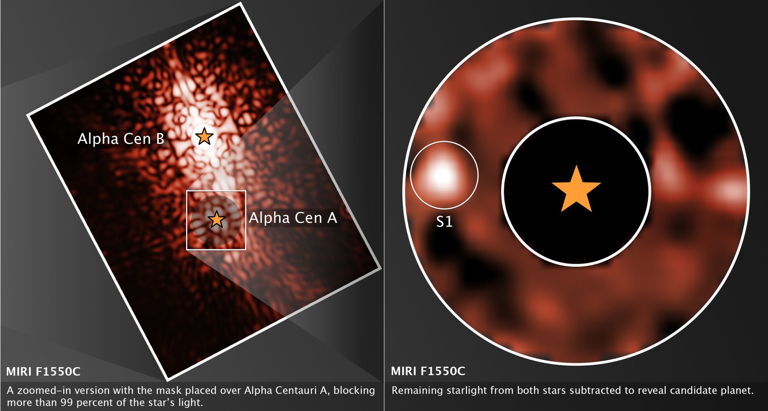 เมื่อเดือนสิงหาคม 2024 ทีมวิจัยใช้ James Webb Space Telescope กับเครื่องมือ Mid-Infrared Instrument หรือ MIRI ร่วมกับ Coronagraph แบบ Four Quadrant Phase Mask เพื่อกำบังแสงจาก Alpha Centauri A ในช่วงคลื่น 15.5 ไมโครเมตร การเลือกช่วงคลื่นนี้ไม่ใช่เรื่องบังเอิญ เพราะในย่าน Mid-Infrared ดาวเคราะห์ขนาดยักษ์ที่อยู่ในระยะ 1–3 AU จากดาวแม่จะมีอุณหภูมิราว 200–350 เคลวิน พอเหมาะให้แสงความร้อนของมันโดดเด่นขึ้นเมื่อเทียบกับแสงจ้าของดาวฤกษ์แม่ การทำงานนี้ซับซ้อนจนทีมต้องออกแบบแผนการสังเกตแบบพิเศษ สำหรับเป้าหมายนี้โดยเฉพาะ แถมยังต้องใช้ดาวสว่างใกล้เคียงอย่าง ε Muscae เป็น Reference Star เพื่อสร้าง Library ของรูปแบบแสงมาลบสัญญาณหลงเหลือจากทั้ง Alpha Cen A และแสงรบกวนจาก Alpha Cen B ที่อยู่ห่างเพียง 7–9 พิลลิอาร์กเซ็ก คล้ายกับการทำงานของหูฟัง Noise Cancellation ที่เราใช้กัน