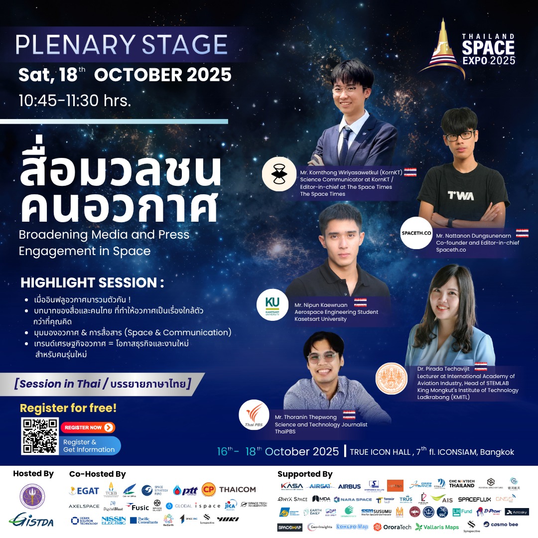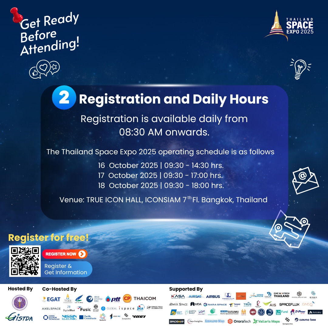 งานนี้คือจุดที่คนทำงานจริง นักเรียน นักวิจัย และคนอยากรู้เรื่องอวกาศมาพบกันได้แบบไม่มีเส้นแบ่ง ทุกคนจะได้เห็นของจริงที่อยู่เบื้องหลังดาวเทียม จรวด และภารกิจที่เราเคยเห็นแค่บนหน้าจอ พร้อมฟังคนที่ “อยู่ในวงใน” ของวงการอวกาศระดับโลกมาเล่าด้วยตัวเองว่าอนาคตของมนุษยชาติบนท้องฟ้าจะไปทางไหน Thailand Space Expo 2025 ไม่ได้เป็นแค่งานนิทรรศการ แต่มันคือ “ภาพใหญ่” ของยุคที่ประเทศไทยกำลังก้าวเข้าสู่เศรษฐกิจอวกาศเต็มตัว ถ้าอยากเข้าใจว่าโลกเรากำลังจะเปลี่ยนไปอย่างไรงานนี้คือที่ที่ควรมาเห็นด้วยตา ฟังด้วยหู และสัมผัสด้วยตัวเอง