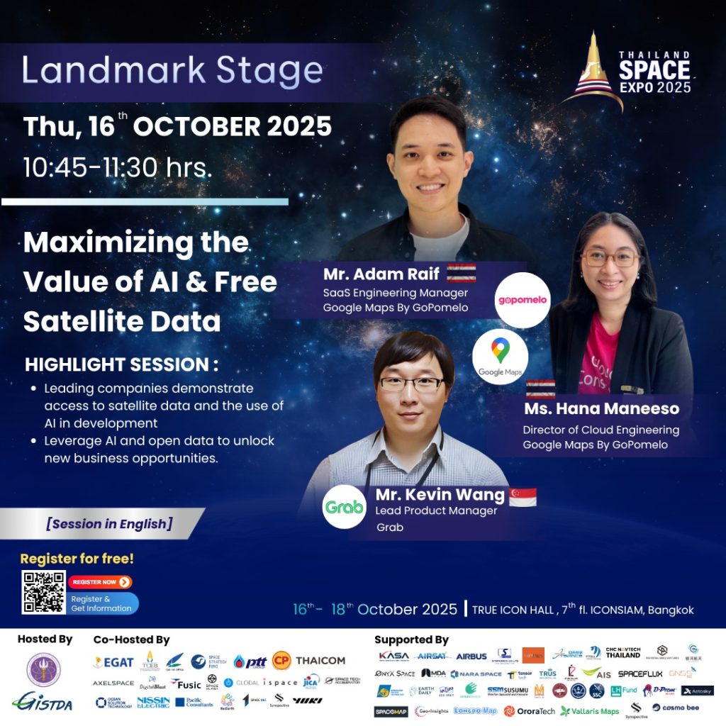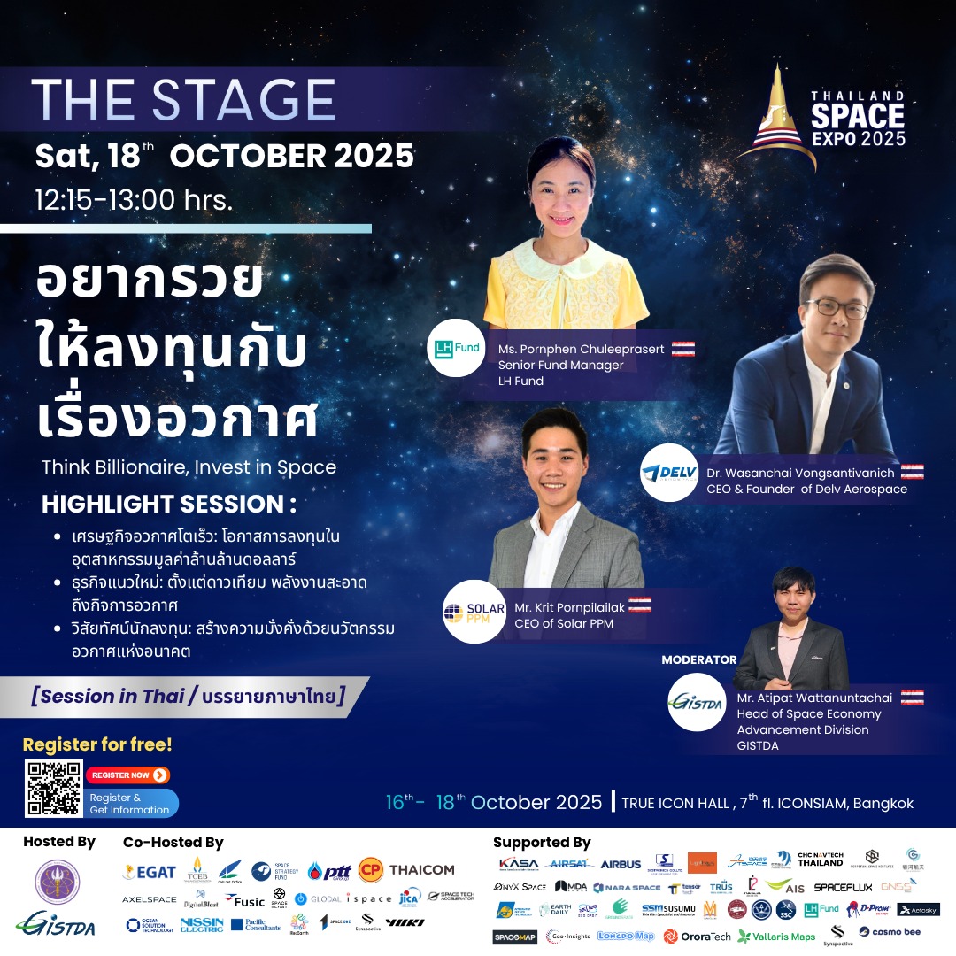 งามรวมตัวผู้คน ธุรกิจ และหน่วยงานอวกาศที่ใหญ่ที่สุดในประเทศไทยกลับมาอีกครั้ง ใน Thailand Space Expo 2025 ที่ในปีนี้จัดขึ้นในวันที่ 16-18 ตุลาคม 2025 ณ True Icon Hall ชั้น 7 ที่ Iconsiam กรุงเทพฯ ถือว่าเป็นงานใหญ่ประจำปีที่จัดขึ้นโดย สำนักงานพัฒนาเทคโนโลยีอวกาศและภูมิสารสนเทศ (องค์การมหาชน) หรือ GISTDA ภายใต้ กระทรวงการอุดมศึกษา วิทยาศาสตร์ วิจัยและนวัตกรรม