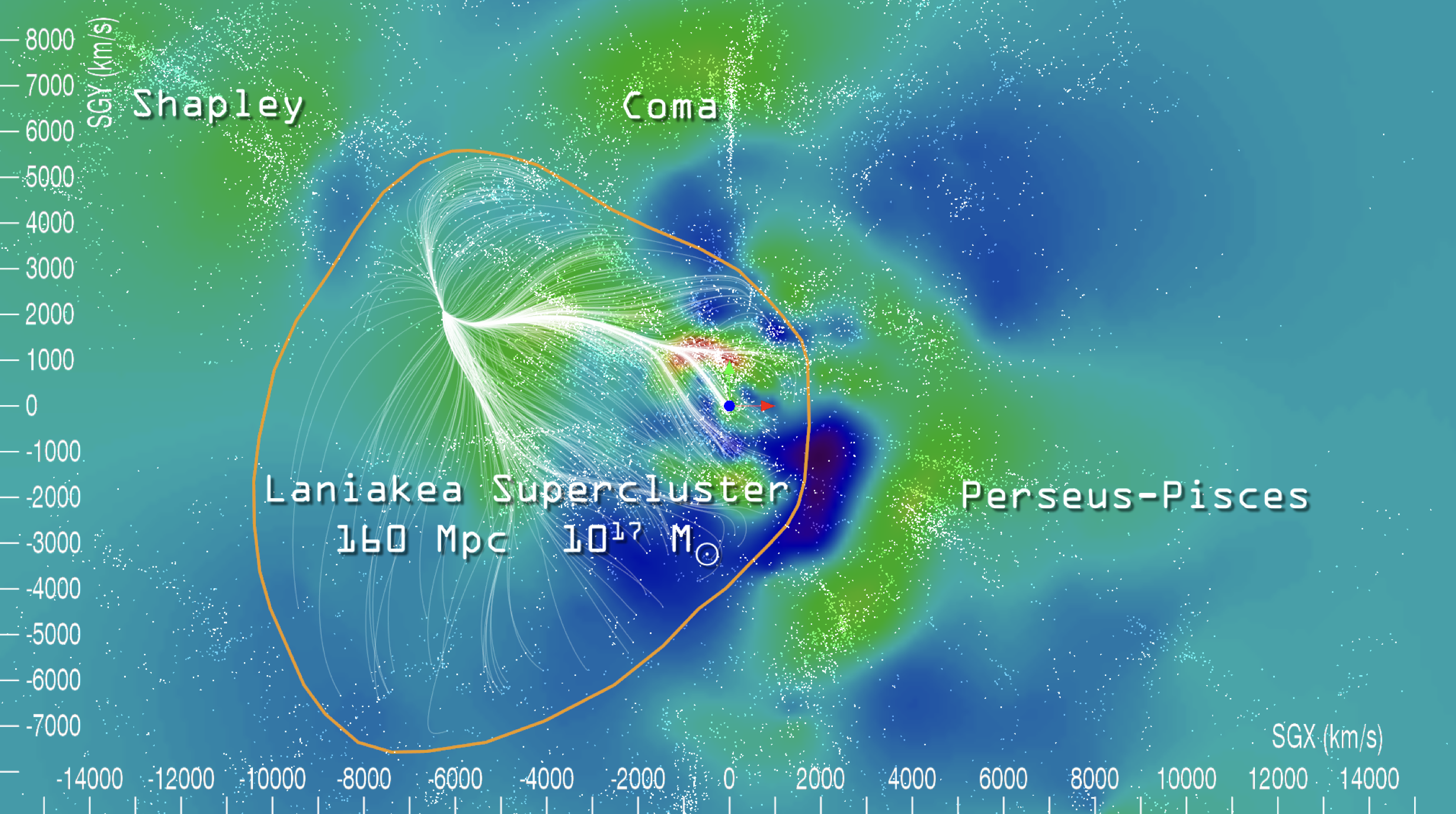 ถ้าเราดูจากภาพเราจะเห็นชัดว่า Laniakea นั้นจะมีลักษณะของการไหลเป็นเส้น ๆ แสดงออกอย่างชัดเจนว่าโครงสร้างนี้มีเรื่องของแรงโน้มถ่วงในการวิ่งเข้าสู่ศูนย์กลางเป็นหลัก